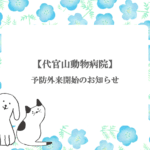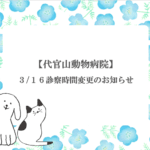 平素より代官山動物病院/自由が丘動物医療センター/GREENDOG&CATアニマルクリニック東京ミッドタウン店をご利用いただき、誠にありがとうございます。 誠に勝手ながら12/15(月)は診察時間を~19時(最終受付18 […]